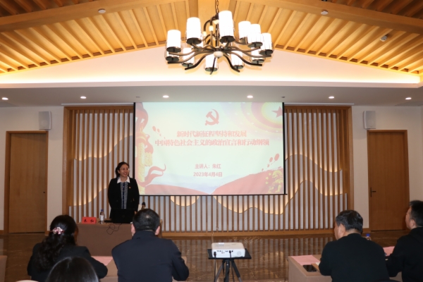为深入学习宣传贯彻党的二十大精神,4月4日,市教育考试院党支部开展专题党课活动,特邀请中小学高级教师、文化里小学党支部书记校长朱红讲授此次课程,全院党员干部参加。朱红老师以“二十大精神学习——新时代新征程坚持和发展中国特色社会主义的政治宣言和行动纲领”为题,从牢记“三个务必”,坚定历史自信、全面建成社会主义现代化强国的战略部署和重大举措、同世界人民携手开创人类更加美好的未来三个方面进行了专题讲解。